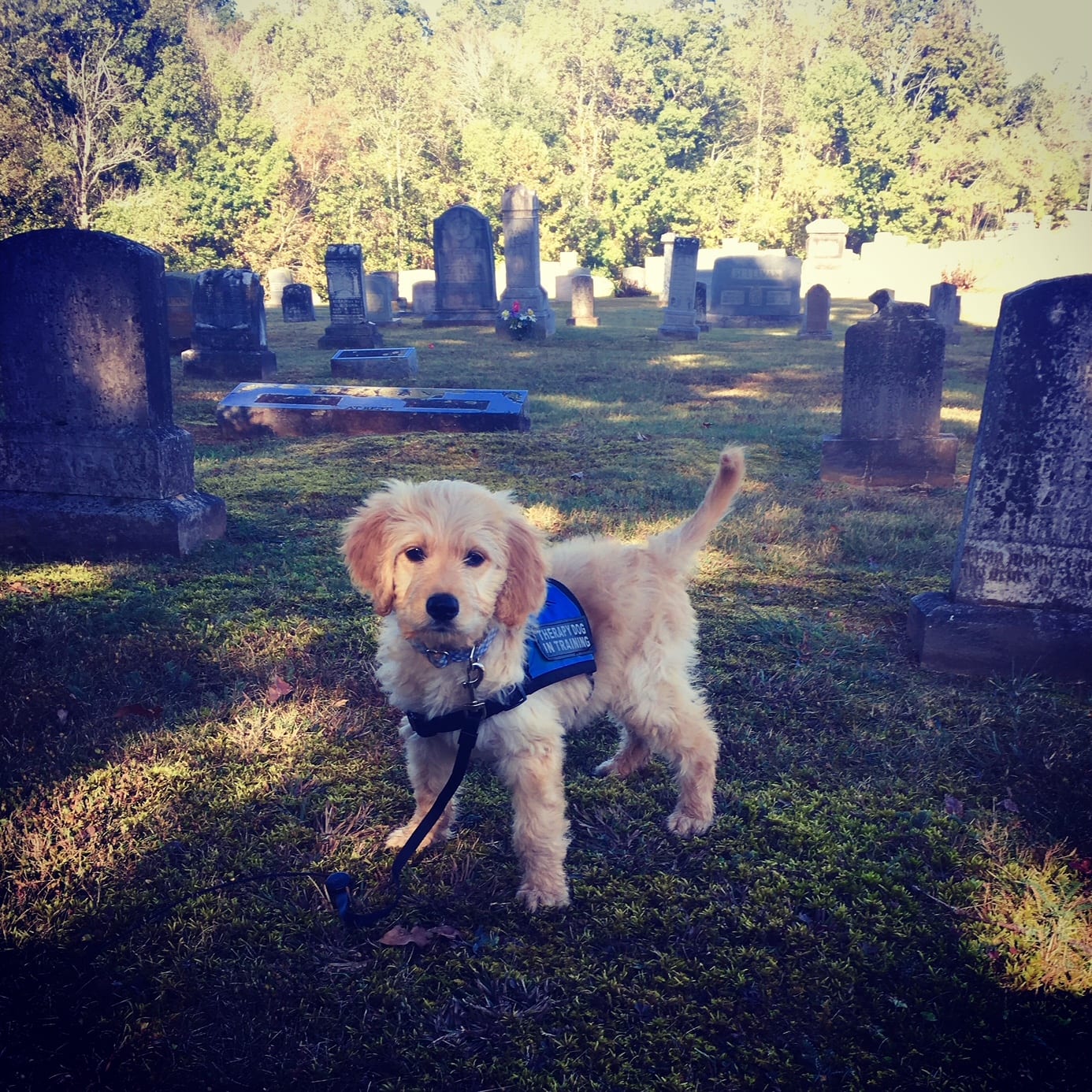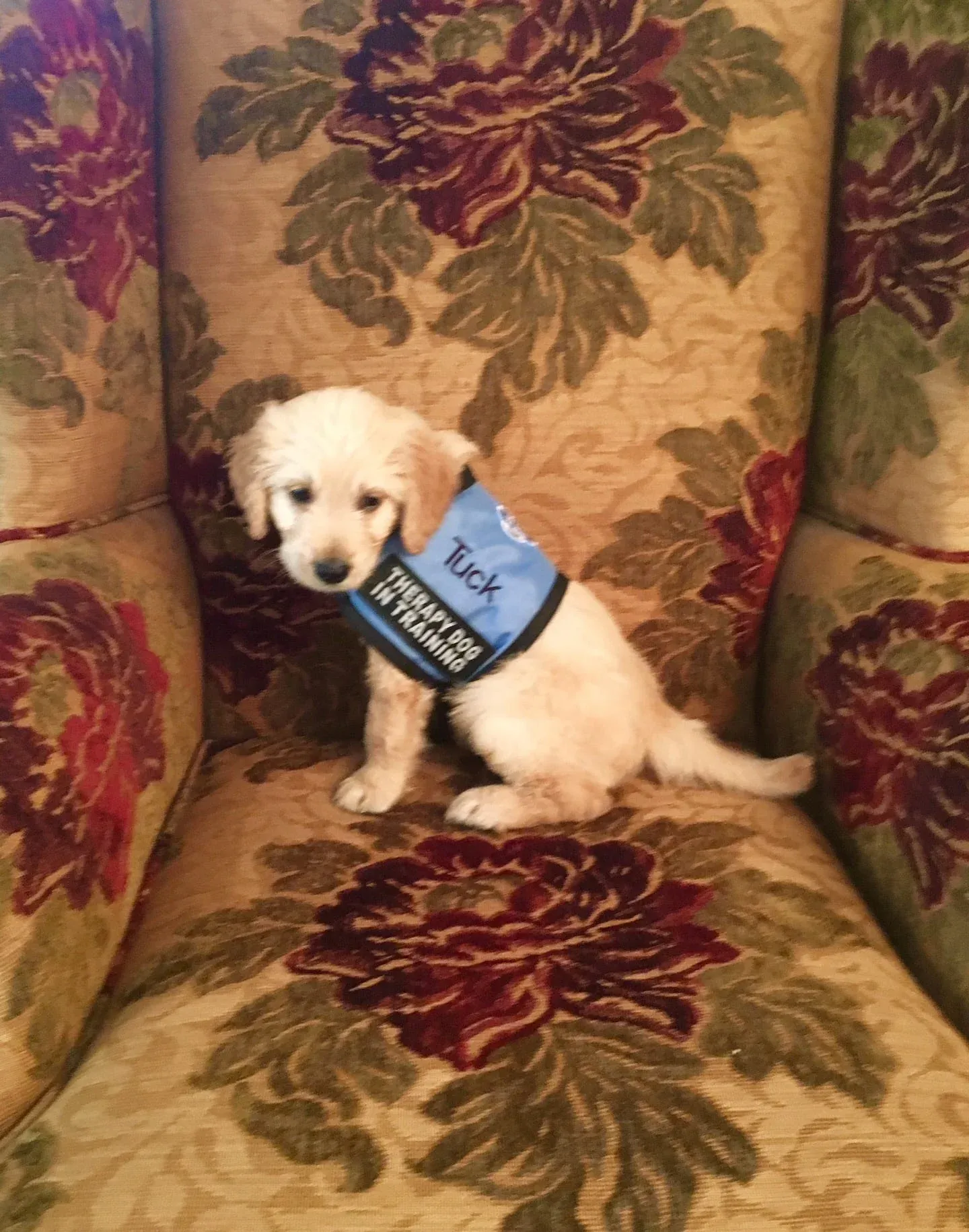 Hello! My name is Tuck and I am a grief therapy dog. I am a Goldendoodle. I have completed my AKC Canine Good Citizen program and a lot of extensive training at Off Lease K-9 Training with Shannon Thurston. After I turned one year old, I was able to go out into the community to meet people as a certified grief therapy dog! I will also be around the funeral home. Please stop by and pick up one of my very own coloring books and watch my Instagram (@Tuck in training) for updates on where I will be and upcoming events I'll be attending! Thanks for joining me in this process and I look forward to meeting you!